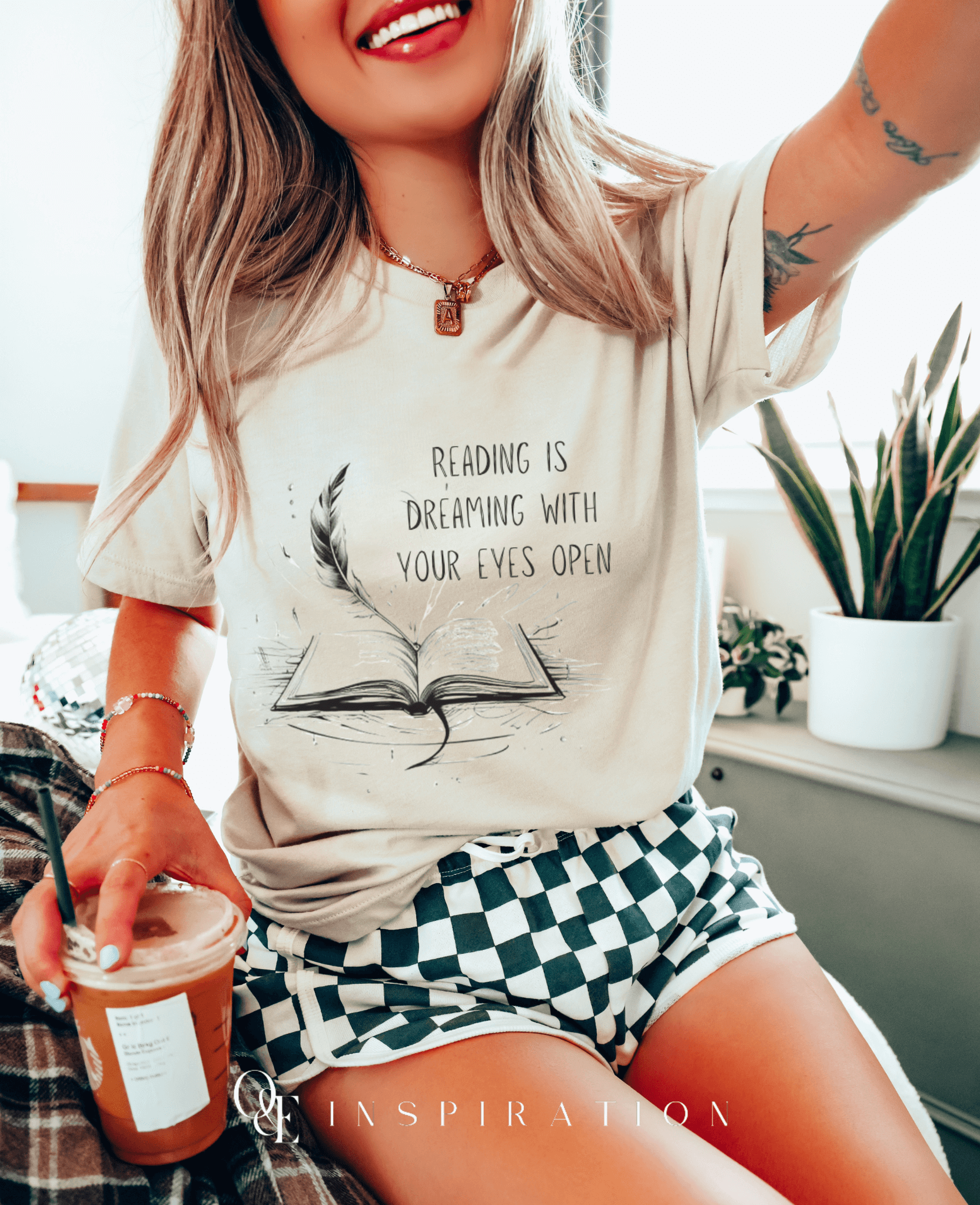 The Reading Is Dreaming T-Shirt is for every dreamer who finds whole worlds between the pages. If you've ever read "just one more page" at 2am, this shirt was made for you.